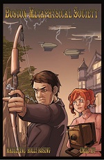 BOSTON METAPHYSICAL SOCIETY (“BMS”) is the name of the webcomic and for those of you who are not familiar with it the story is about an ex-Pinkerton detective, his medium/spirit photographer partner and a scientist who battle supernatural forces in late 1800’s Boston. Yes, ladies and gentlemen, it is a steampunk webcomic though in some circles it has been called steamgoth. (Think steampunk with paranormal elements.)